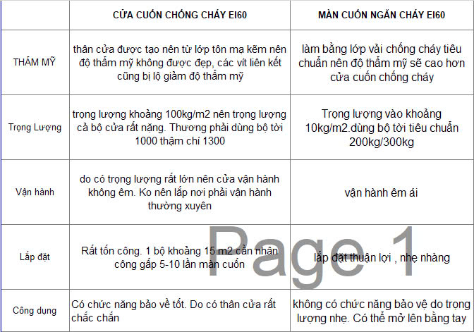 Các bạn xem lại thông số kĩ thuật của : Chi tiết về Cửa cuốn chống cháy ei60